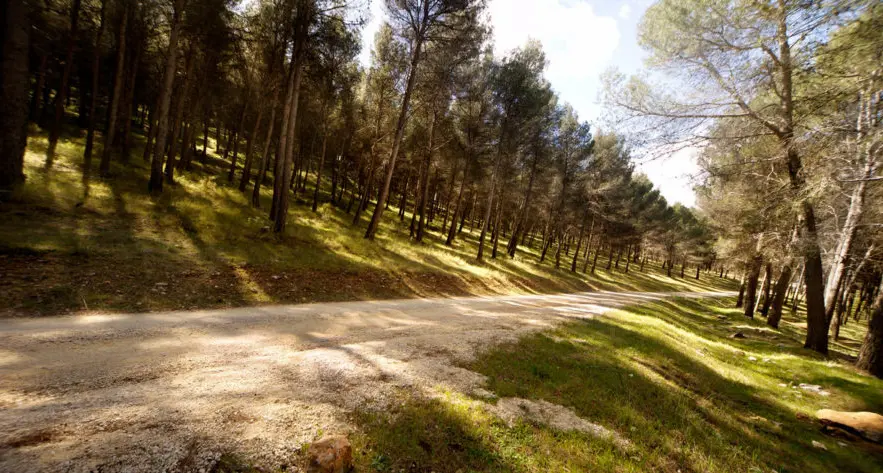 El paisaje del parque está compuesto principalmente por un denso pinar de repoblación que tiene más de 50 años de edad, donde el protagonista es el pino carrasco. Lo que más me gusta de este entorno es el contraste visual que ofrece: las rocas calizas de las montañas tiñen el paisaje de tonos blanquecinos que contrastan maravillosamente con los verdes del olivar.